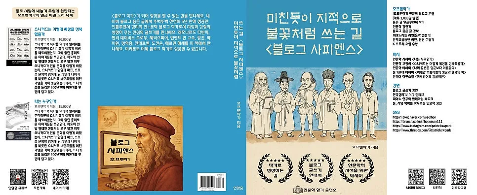 단지 쓰는 것이 좋아서 혼자만 쓸 수도 있다. 하지만 오래 가는데 어려워지고 포기할 수 있다. 블로그 사피엔스가 되는 길은 오래도록 여생을 글과 함께 살아가는데 큰 원동력이 된다. 혼자 읽는 메모나 일기에서 그치는 것이 아니고, 블로그 거인들의 세상에서 날마다 책을 발행하는 뿌듯한 성장과 결실의 길을 걷게 된다. 좋은 블로그 글쓰기는 자신을 바꾸고 세상을 바꾸는 길이다._호프맨작가