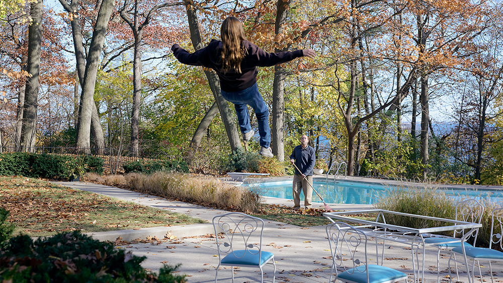 감독의 전작보다 <드림 시나리오>가 더 현실적으로 다가오는 이유는 폴의 평범하고 일반적인 그리고 수동적 삶의 자세에서 나온다. 첫 장면, 딸의 꿈속에 등장한 폴이 하는 거라곤 수영장 주위에 있는 낙엽을 치우는 일이다. 자신도 모르게 하늘로 떠 올라 무섭다고 말하는 딸에게 그는 괜찮다는 식의 말만 늘어놓는다. 다른 이들의 꿈에서도 그는 지나가는 행인에 불과하다. 영웅처럼 중요한 일을 하는 이가 아닌 병풍 같은 역할만 하는 이 남자는 평범한 우리의 모습과 닮아서 더 측은해 보인다.