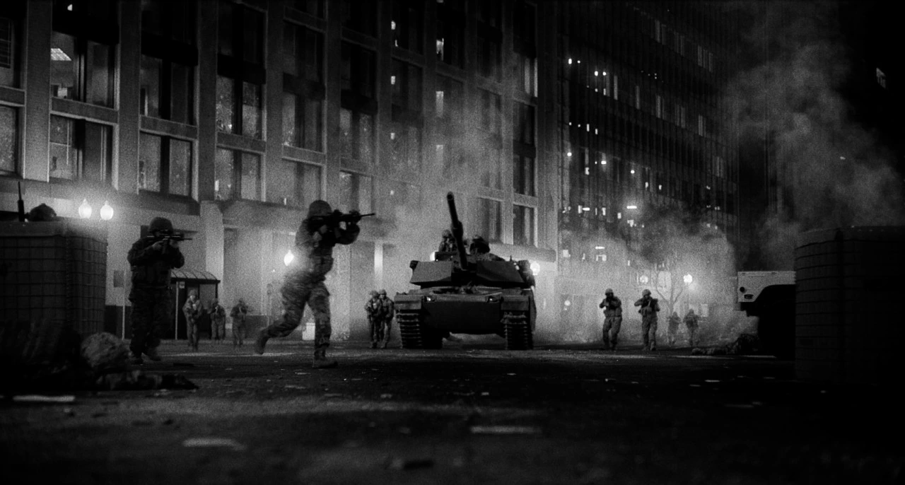 도덕적 딜레마를 겪음에도 사명감으로 일하는 그녀와 기자들은 후반부 사진기를 무기 삼아 전장에 뛰어들고, 워싱턴 D.C에 도착한다. 후반부에는 그 다양한 내전 상황을 겪은 이들이 정신적으로 힘든 상황에서도 자신들이 해야 하는 임무를 어떻게든 수행하기 위해 노력하는 이들의 모습이 그려진다. 이들은 군인들의 무기처럼 카메라를 무기로 삼는데, 특히 수동 카메라를 갖고 다니는 제시는 총알을 장전하는 것처럼 필름을 감고, 총알을 발사하는 것처럼 셔터를 누른다. 총격을 피해 기록을 남기는 이들의 무모한 진격은 군인과 별반 다르지 않다는 걸 이 장면에서 잘 말해준다.