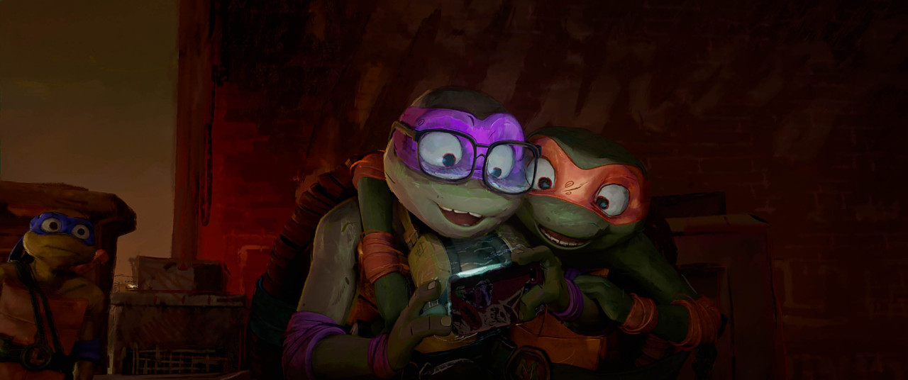 관객으로서 이 영화에 기대하는 건 현란한 액션일텐데, 특히 이 시리즈의 백미는 서로 다른 개성과 특징, 무기를 가진 네 주인공의 협동 액션이다. 후반부 슈퍼플라이와의 대결에서 닌자거북이들의 협업 액션은 굿! AI를 대항해 가족의 협동 공격을 그렸던 <미첼 가족과 기계전쟁>의 제프 로우 감독이 연출을 맡았으니, 걱정은 놉! 작화도 영화 톤에 맞게 잘 살린 편이라 보는 맛이 좋다. 일단 무서운 거북이 모습이었던 <닌자터틀>(2014)의 캐릭터가 아닌 원작처럼 귀여움이 되살아난 게 가장 좋다.