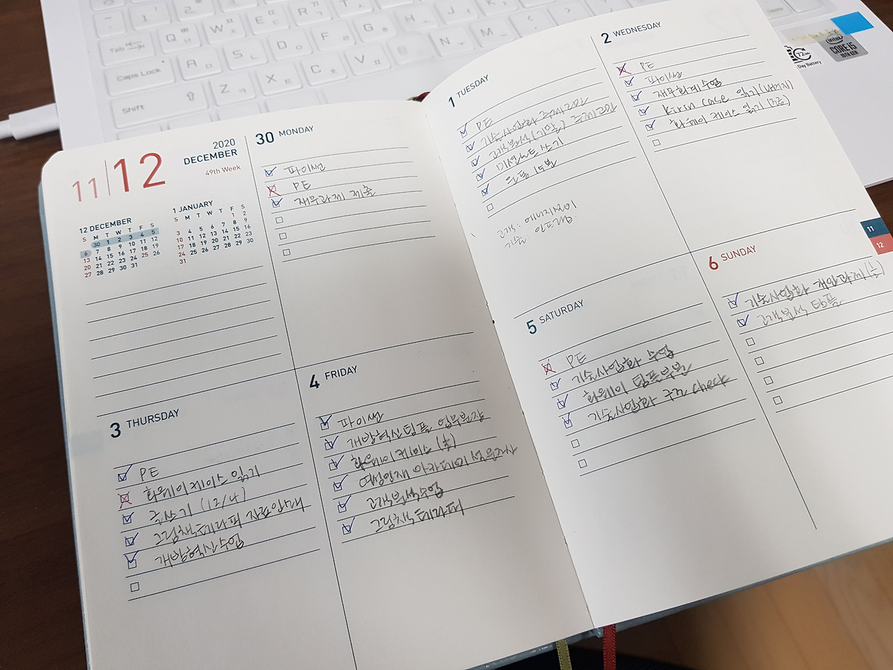 (좌) 대학원 과제를 정리한 스케줄러 / (우) 기말고사 전날 엉망인 책상