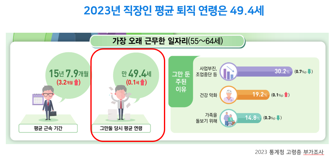 2023년 대한민국의 평균퇴직 연령은 49.4세이다.