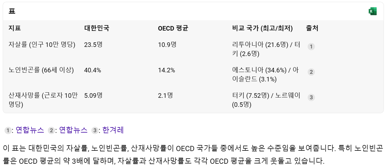 불명예스러운 대한민국 OECD 1위 3종 세트가 있다.