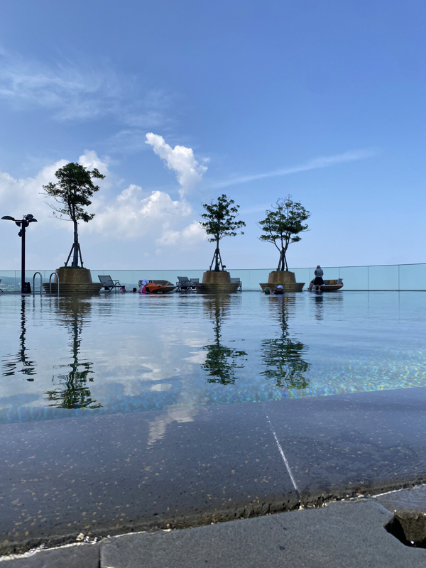 넋놓고 있을 때가 아니다. 싸게싸게 수영장으로 가자. 아이는 한번도 대중수영장에서 수영한 적이 없다. 수족구에 씨게 데인 후 집 앞 물놀이장도 패스였다. 호텔 수영장은 물 순환이 되겠지? 넓어서 괜찮겠지? 안 가면 돈 아깝자나? 어찌됐던 호텔에 왔으면 뽕을 뽑고자 하는 나의 마음 한 구석에서 외쳤다. 나도 거의 10년 만에 수영장에 몸을 담궜다. 와 ㅋㅋㅋㅋㅋㅋ 너무 재밌어 ㅋㅋㅋㅋㅋㅋㅋ 물위에 둥둥 떠서 저 멀리 비행기 지나가는거 보고 썬베드에 누워 발꼬락 샷도 찍고. 아이는? 지금까지 수영장에 데리고 오지 않은게 미안할 정도로 신나있었다. 바다사나이 아빠의 피를 물려받은 것일까. 파닥파닥 발을 움직이는 그 모습이 너무 귀여워 동영상만 수십개다. 입으로 코로 물을 먹으면서도 물 밖으로 나오지 않았다.