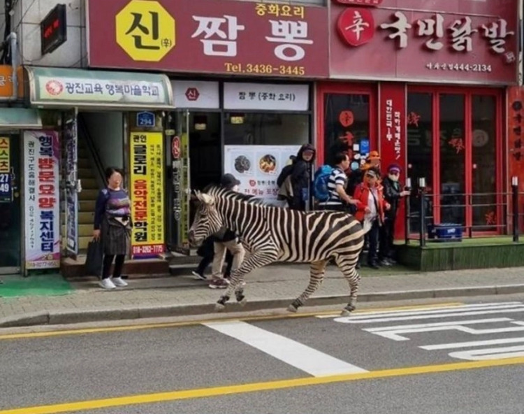 ‘두 눈을 의심했다’라는 말이 딱 맞았다. 중화요리 辛짬뽕 앞 얼룩말. 너무 비현실적이면 사람은 멍하다. 얼룩말을 바라보는 아주머니 표정이 그렇다. ‘니가 왜 여기서 나와’. 도로를 꽉 메운 차들 사이로 두리번 거리는 얼룩말. 골목을 유유히 걸으며 배달기사를 빠쿠턴시킨 얼룩말. 실제 얼룩말을 본 이는 ‘내가 조현병인줄 알았다’고 했다. 마취총 여섯대를 맞고나서야 스러져버린 얼룩말 ‘세로’는 자신이 태어난 ‘집’ 어린이대공원으로 끌려갔다.
