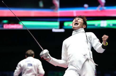 이번 올림픽에서 국민들에게 역전의 드라마를 보여준 박상영이다. 나도 이 경기를 보며 짧은 2분 간 주먹을 얼마나 줬다 폈는지 모른다. 1점만 허용하면 패배가 확정되는 벼랑 끝에서 그가 보여준 혼잣말은 우리 모두에게 기적을 보여줬다.