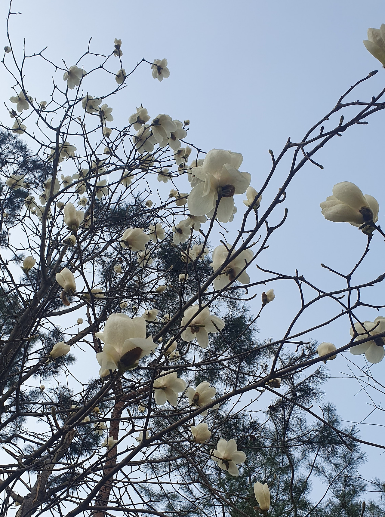 즐거운 상상을 하면서 눈을 돌리면 푸릇푸릇 초록초록한 새싹이 보이고, 또 눈을 돌리면 큰 나무마다 꽃잎 활짝 펼치려고 준비 중인 꽃봉오리도 보인다. 군데군데 활짝 핀 개나리도 보이고 벚꽃도 보이고 목련도 보이고, 동백꽃도 보인다.