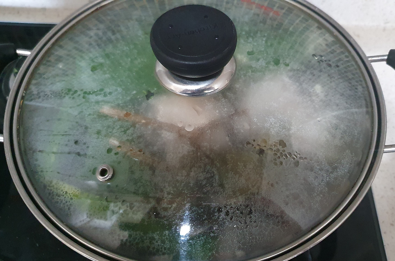 그리고 냄비에 붙은 불순물도 수세미로 깨끗이 씻어줬다.
