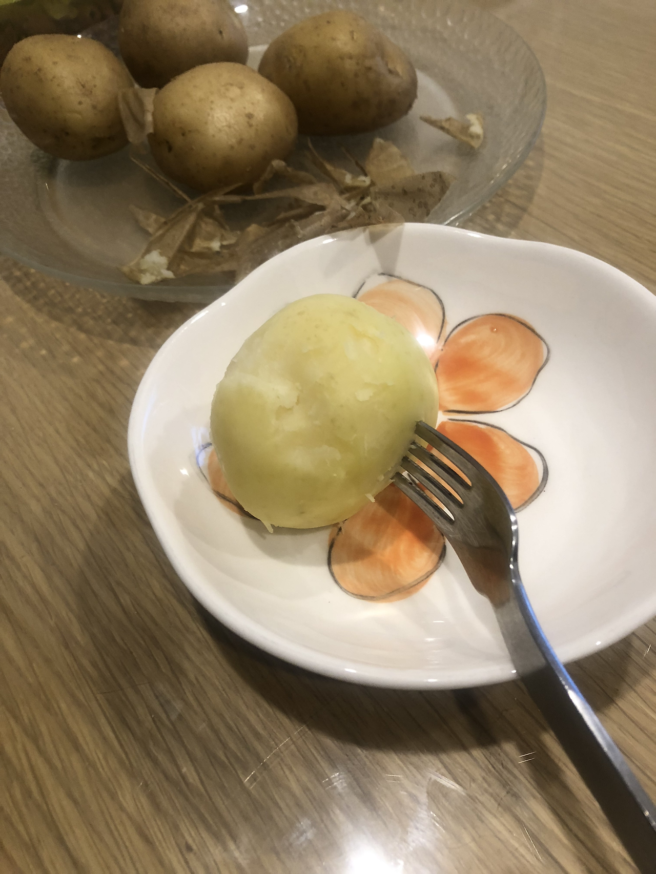 그래서 작은 접시와 포크를 준비했다. 그 뜨거운 감자의 껍질을 까서 먹기 좋게 작은 접시에 담아서 포크로 먹을 수 있게 대령해줬다. 아내는 만족한 듯 맛있게 먹으며 티브이를 보며 깔깔거린다. 내 손은 뜨거웠지만 난 괜찮다~