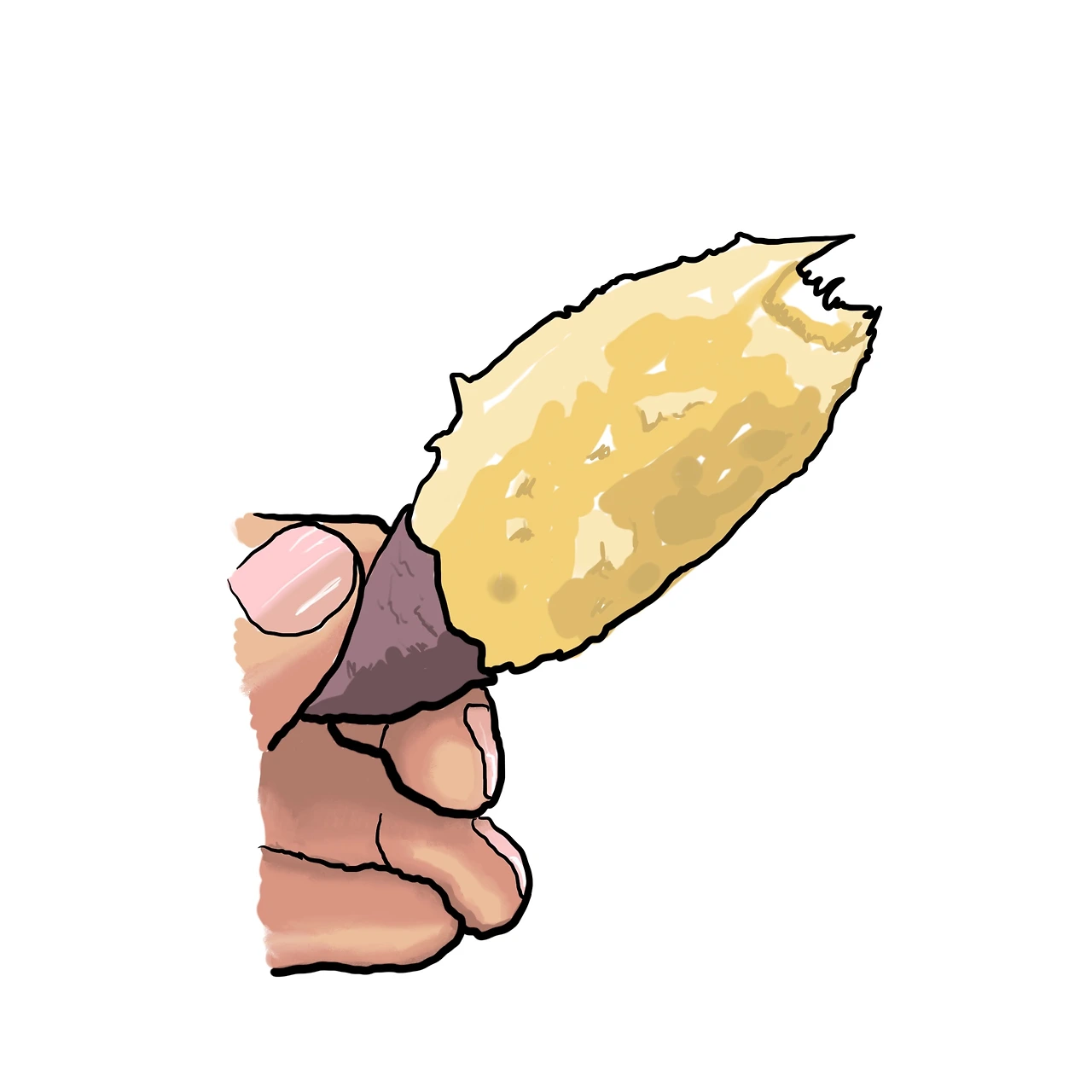 고구마는 양 끝부분을 1cm 정도 뜯어내 줘야 한다. 그 부분이 질긴 심지 같은 것들이 모여있기 때문에 제거하지 않으면 이빨에 끼거나 먹을 때 이물감이 느껴진다. 재수 없으면 전체가 심지 천국인 고구마를 만나기도 한다. 그리고 상처가 있는 부분은 손톱을 이용해서 파 내준다. 이때 손톱 사이에 고구마가 끼인다. 그리고 고구마 특유의 끈적거림이 있다. 그래서 고구마 껍질을 까고 나면 손과 손톱을 꼼꼼히 닦아줘야 한다. 귀찮아서 그냥 손가락을 입으로 빨고 이로 손톱에 끼인 고구마를 파내서 먹긴 하지만 생각보다 정성이 필요한 작업이다.