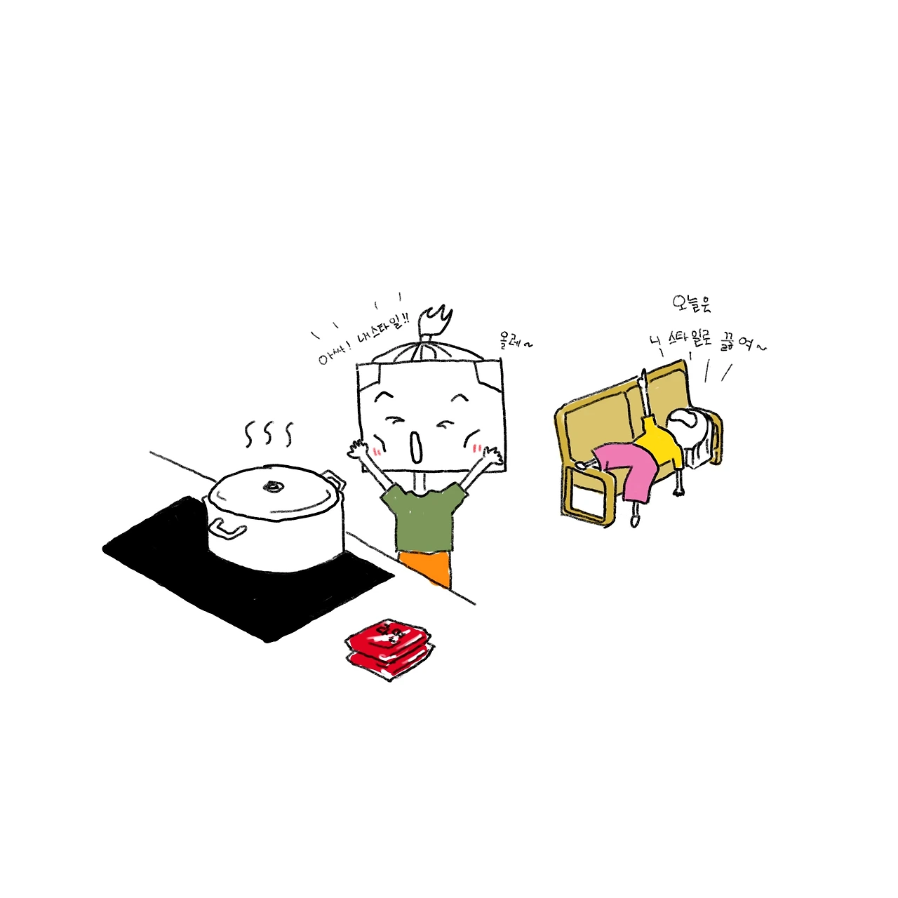 “오늘은 특별히 아무것도 넣지 말고 니 스타일로 끓여먹자!”