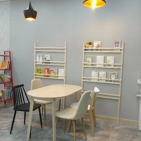 풍성해진 공간,,, 학생들 독서 테이블이 더 필요해서 동그란 테이블을 추가 구매했답니다. 역시 조립의 신이 임해야 하는 작업이었죠.