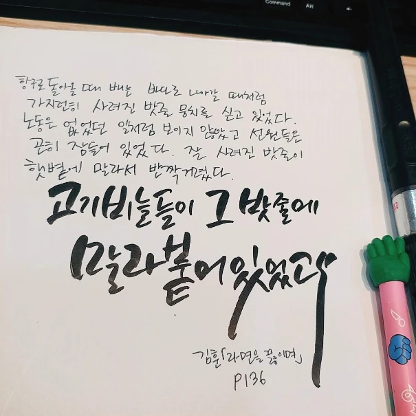 "고생하네요. 아름답네요. 당신의 흔적이 보이네요"