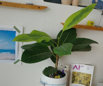 공방 오픈 6개월 차. 그럭저럭 유지합니다. 공방에 사람들의 소리와 책과 무엇을 채울까 고민했습니다. 생명의 역동성이 가득하기를 바라는 마음에 하나둘 식물이 늘어났습니다. 어느 가게에나 있을 스투케는 선물로 들어왔습니다. 6개월째 새싹 하나 올라오지 않는 통에 마음이 많이 아립니다. 살아있는지 죽었는지 알 길이 없어서요. 뱅갈 고무나무도 선물로 들어왔습니다. 5개월 동안 꼼짝도 않고 이파리가 파랗게 멈춰있었습니다.