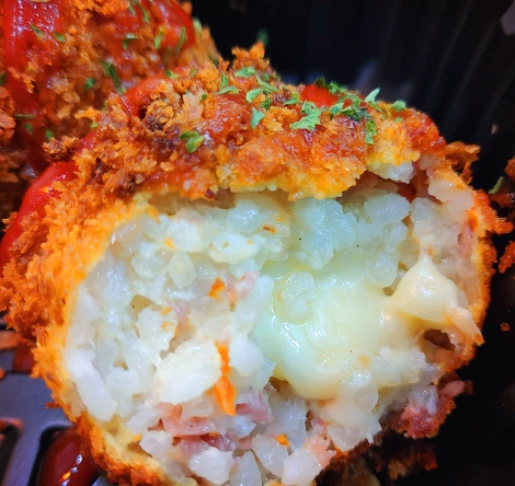그냥 고로케는 식어도, 얼어도 맛있다며 즐기는 나인데 이태리식이라는 구절이 매혹적이었다. 올리브에서 막 짜낸 최상급 기름으로 상큼한 향이 날 것만 같아 얼른 주문했다. 손바닥 만한 종이에 쓴 손글씨로는 맛을 예측할 수 없었다. 종이컵을 가득 채운 비주얼, 숟가락과 함께 나온 동그란 고로께는 사랑스러움이 케첩과 함께 묻어있었다. 겉바속촉에 눈이 동그래졌다. 함께 먹던 딸은 엄지 척을 쌍으로 백만 번 날렸다. 쭉쭉 늘어나는 치즈의 풍미와 고고한 살결을 가진 볶음밥은 고소함의 최고봉이었다. 이런 걸 1000원에 판다고?