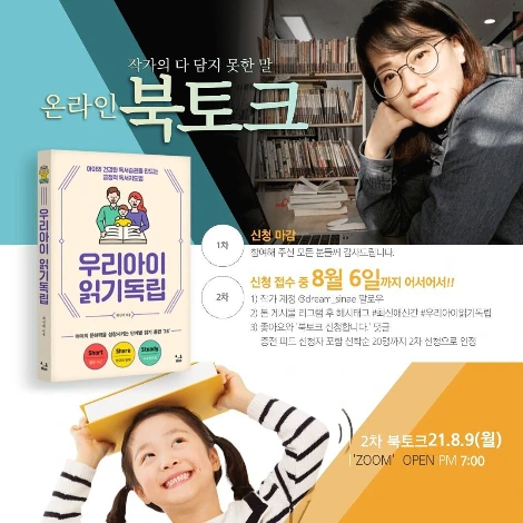 7월 26일 1회 랜선 북토크를 무사히 진행했다. 홍보하기도 전에 북토크를 원하는 맘들과 함께 연령별 독서 테라피를 미니 강연으로 전달했다. 참여자들과 활발한 Q&A를 하니 평소 궁금한데 책으로는 답을 얻기 어려웠던 점이 시원해졌다는 피드백이 많았다.