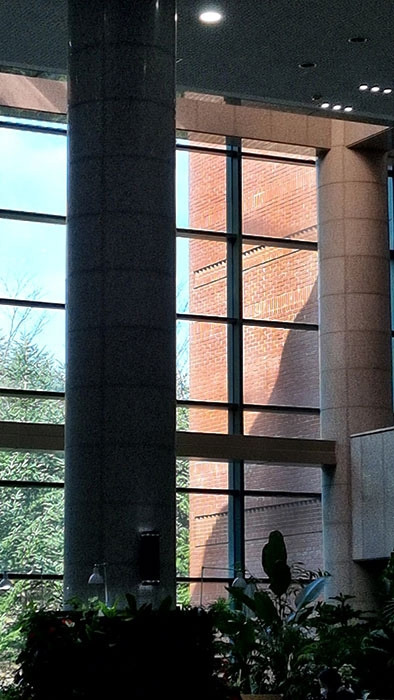 실내에도 초록 잎사귀들로 도서관 로비를 여유롭게 단장해 놓았고 겨울이지만 초록 잎들이 보이는 창 밖 풍경이 참말로 좋다.