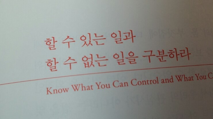그리고 '내가 어찌할 수 있는 것과 없는 것을 구분하라'라고 말했다. 인생에서 '내가 할 수 있는 권한에만 노력하되 내가 할 수 없는 것들은 모두 신에게 맡겨라'라고 말하고 있다.