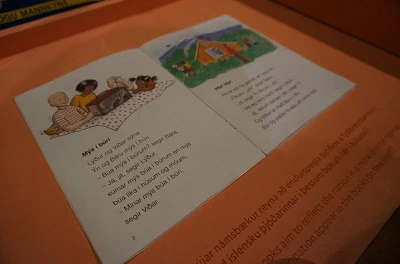그리고 인상적인 것으로 다문화사회를 대비해 학교에서 쓰는 교과서가 전시되며 교육의 중요성을 강조하고 있습니다. 삽화부터 보면 의도적으로 등장인물들을 생김새를 다양하게 표현하고 있음을 알 수 있습니다. 우리나라 역시 이런 노력을 하고 있지만, 사회 변화 속도에 비해 느리고 소극적이며 일부에의해서만 이루어지지는 않는지 생각해보아야겠습니다. 하루빨리 우리나라 교과서에서도 다양한 사람들의 '진짜' 모습을 볼 수 있기를 바래봅니다.(↓)