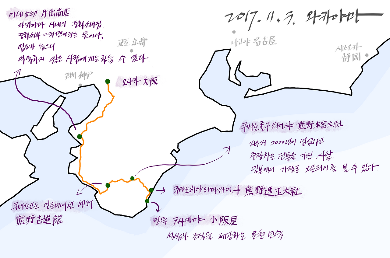 내일은 본격적이진 않더라도 쿠마노코도의 일부분을 같이 걸어보기로 했다. 문득 생각해보니 시코쿠도 순례길로 유명한 곳이다. 시코쿠를 포기하고 오사카로 올라왔더니 친구들과 함께 쿠마노의 순례길을 걷게 되었구나...
