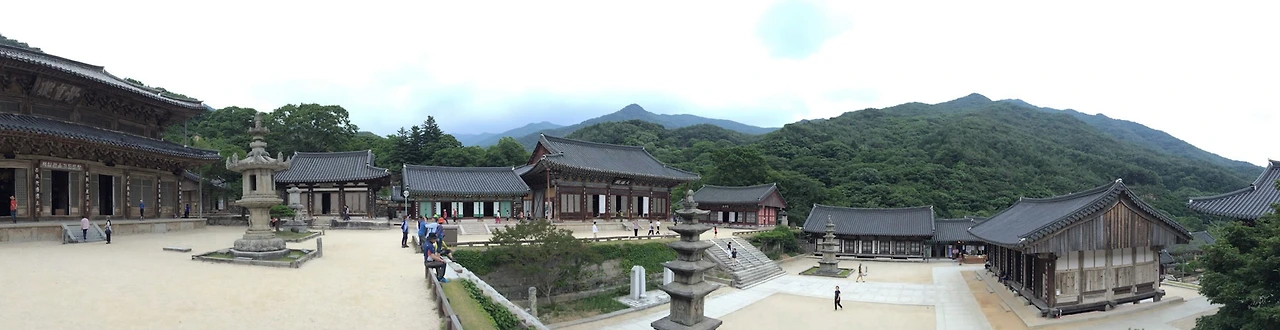 파노라마만으로는 다 표현할 수가 없어서, 대웅전과 서오층석탑을 지리산의 산세와 함께 한 컷.