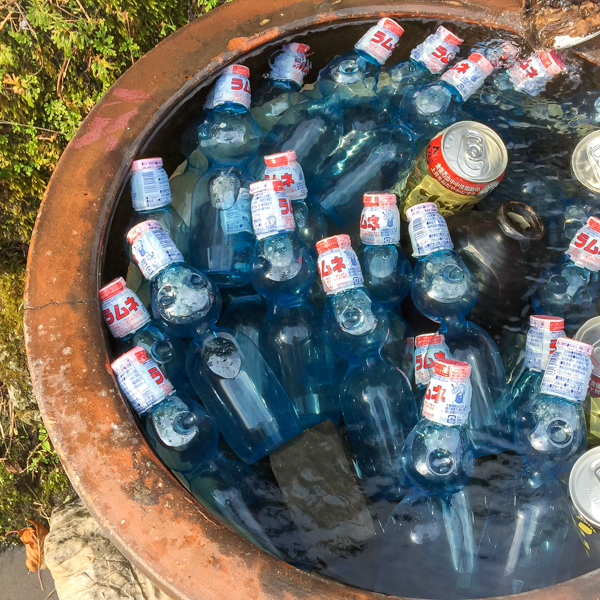 30분쯤 걸었을까? 울창한 숲길이 끝나고 작은 가게가 하나 나타났다. 가게 옆에는 시원한 물을 흘려보내며 차가운 음료를 보관하는 통이 보였는데, 그 안에는 라무네(ラムネ)가 가득했다. 우리나라에는 없는 음료고, 병을 여는 방식도 특이한 음료인데, 이상하게 이 음료를 보면 정감이 간다. 아! 그래! 야구왕바! 어린 시절에 먹던 아이스크림인 야구왕바가 바로 딱 이 라무네의 맛이다.