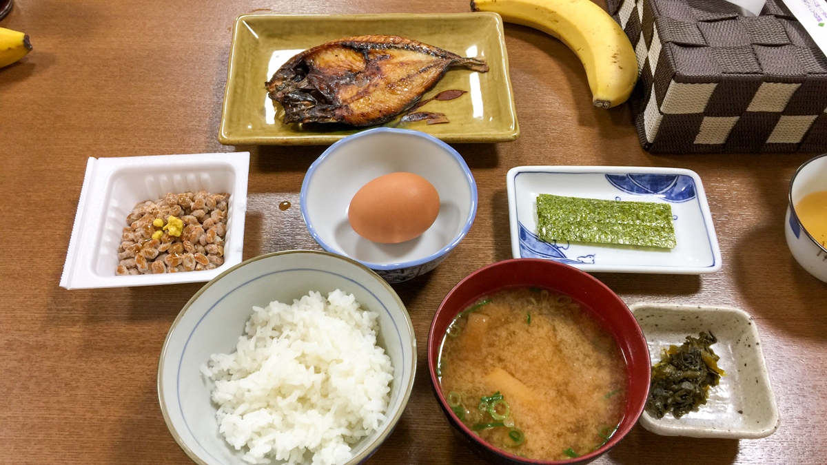 아침 일찍부터 움직였다. 조식이 8시까지였기 때문에 어쩔 수 없는 일. 온천민숙 코사카야(温泉民宿 小阪屋本館)의 조식은 간단했다. 미소시루에 낫토, 쯔케모노 한 종류와 생선구이, 날달걀과 김구이. 후식으로는 바나나 하나. 평범하고 손이 별로 갈 것 같지 않은 구성이었지만 의외로 든든했다. 낫토에 달걀을 함께 풀어서 한참을 휘휘 저은 다음 밥 위에 올려 먹는 것을 처음 배웠다. 낫토와 달걀의 조합이라니.
