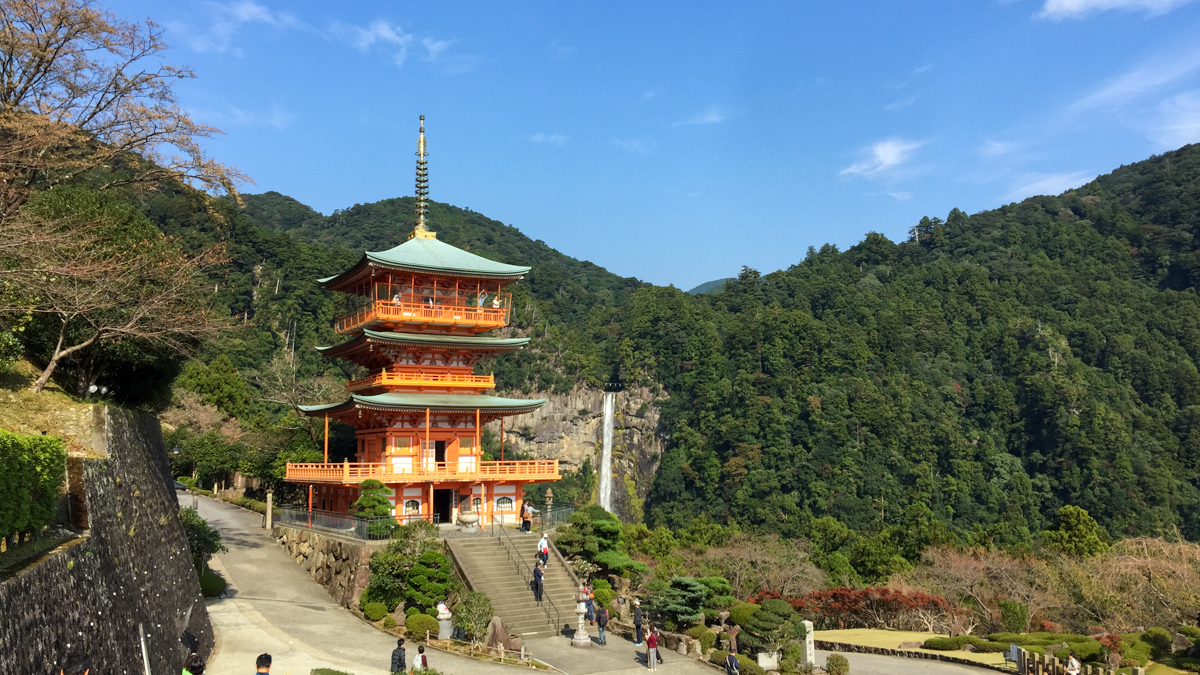 다음 목적지는 나치 폭포(那智滝)라고 했다. 친구들이 가리키는 방향을 보니 멀리서도 한눈에 폭포가 보인다. 그 폭은 좁았지만 높이는 꽤 높은 폭포였다. 나중에 검색해보니 일본에서 가장 유명한 폭포 중의 하나로, 물줄기가 하나로 떨어지는 폭포 중에서는 낙차가 가장 큰 폭포라고 한다.
