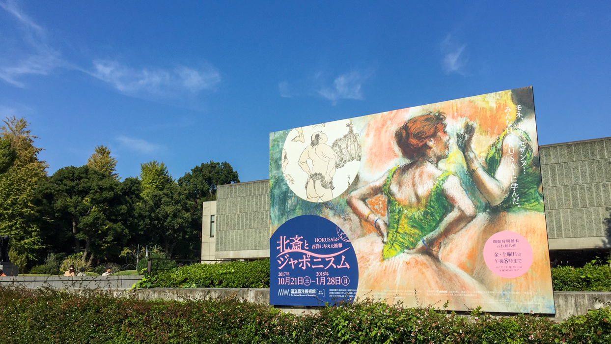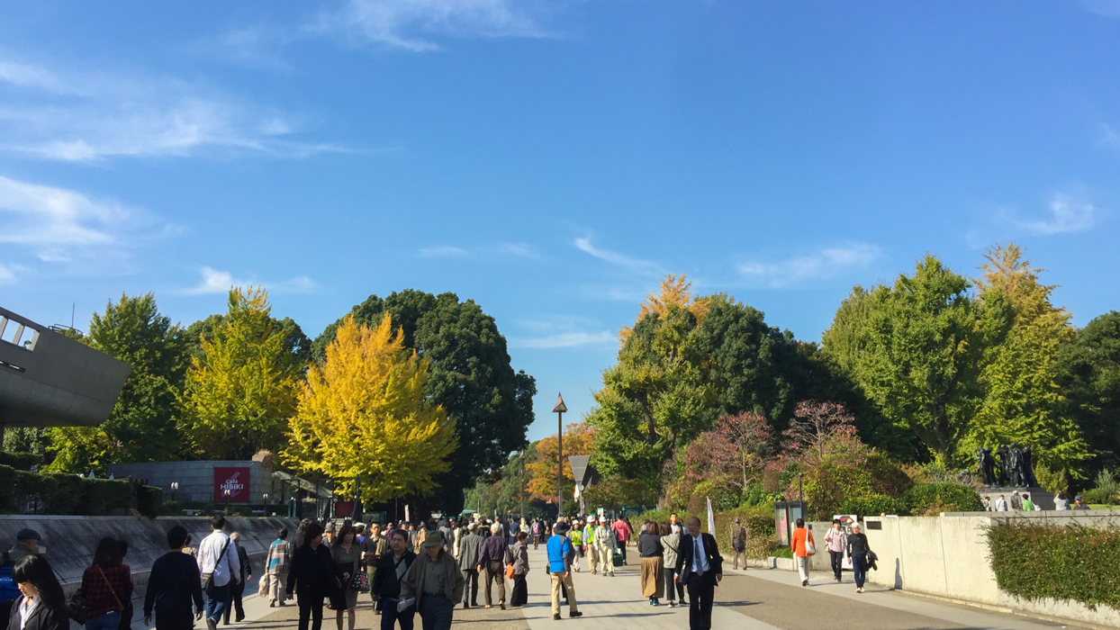 매표소를 지나니 바로 국립 서양 미술관이 보인다. 당시에는 별생각 없이 걸으며 지나가느라 몰랐는데 [호쿠사이와 자포니즘], [지옥의 문에게 인사] 등의 전시가 진행 중이었구나(사진을 보고 급하게 내 맘대로 의역해봤다;;)...