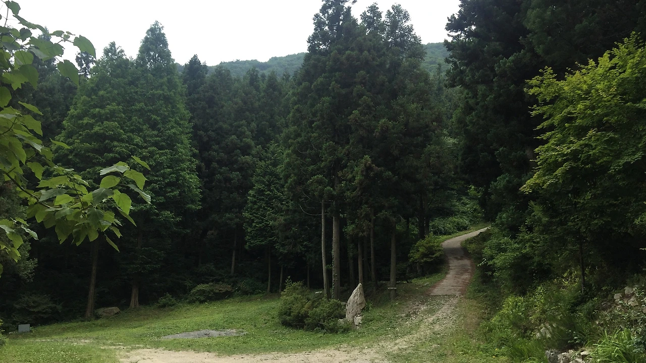 어쨌든 차를 세워두고 휴양림 산책 시작. 하아... 배가 고픈데. 점심시간이 지났는데, 나는 왜 산책을 하고 있나? 라는 생각으로 시작했지만 걷다 보니 경치도 좋고 공기도 좋아서 어느새 산책에 푹 빠져 버렸다. 산책 중간에 버섯을 키우는 곳을 만났는데, 가까이 가서 슬쩍 봐도 어떤 버섯을 키우는지는 모르겠었다.