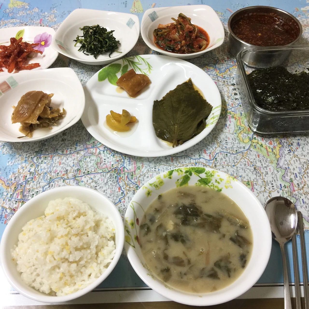 어젯밤에 주인 아주머니가 수박을 주시면서 '내일 아침 8시에 넘어와서 아침 드세요'라고 하셔서 일찍 일어나 (초췌하고 지저분한 몰골을 보여드릴 순 없어서) 싹~ 씻고 옷도 좀 깔끔하게 입고 본채로 넘어갔더니, 아니 이렇게 멋진 아침 식사가! 그리고 여행 내내 주로 혼자 밥을 먹었는데, 주인댁 따님들도 같이 식사를 해주셔서(?) 참 어색했지만 오랜만에 사람 냄새나는 식탁. 게다가 어머니 손맛이 좋으셔서 반찬 하나하나가 너무 맛있었다.