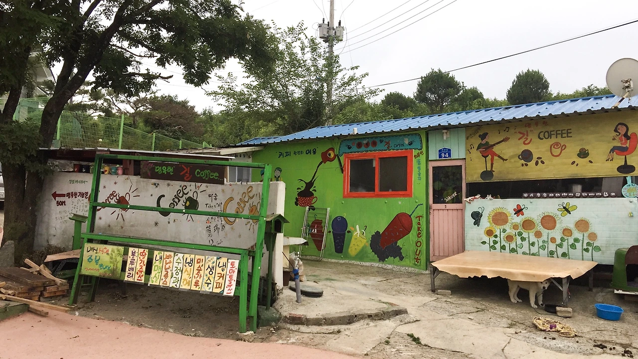 명옥헌원림은 차를 좀 먼 곳에 세워두고 걸어 올라가야 하는 곳이었다. 올라가는 길에 만난 알록달록한 길 카페.