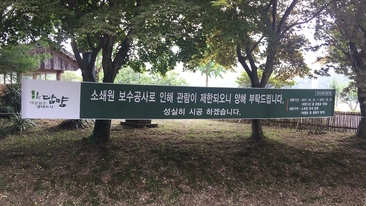 아뿔싸, 소쇄원 보수공사. 입구 쪽의 일부분 외에는 입장을 제한하고 있었다. 그래서 입장료가 없었다는 것이 다행이었다면 다행일까.