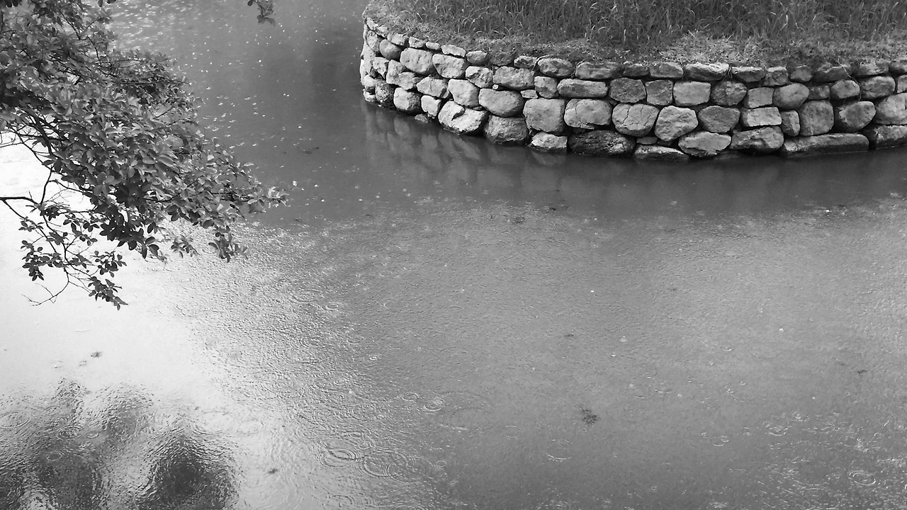 연못 위로 떨어지는 빗소리.