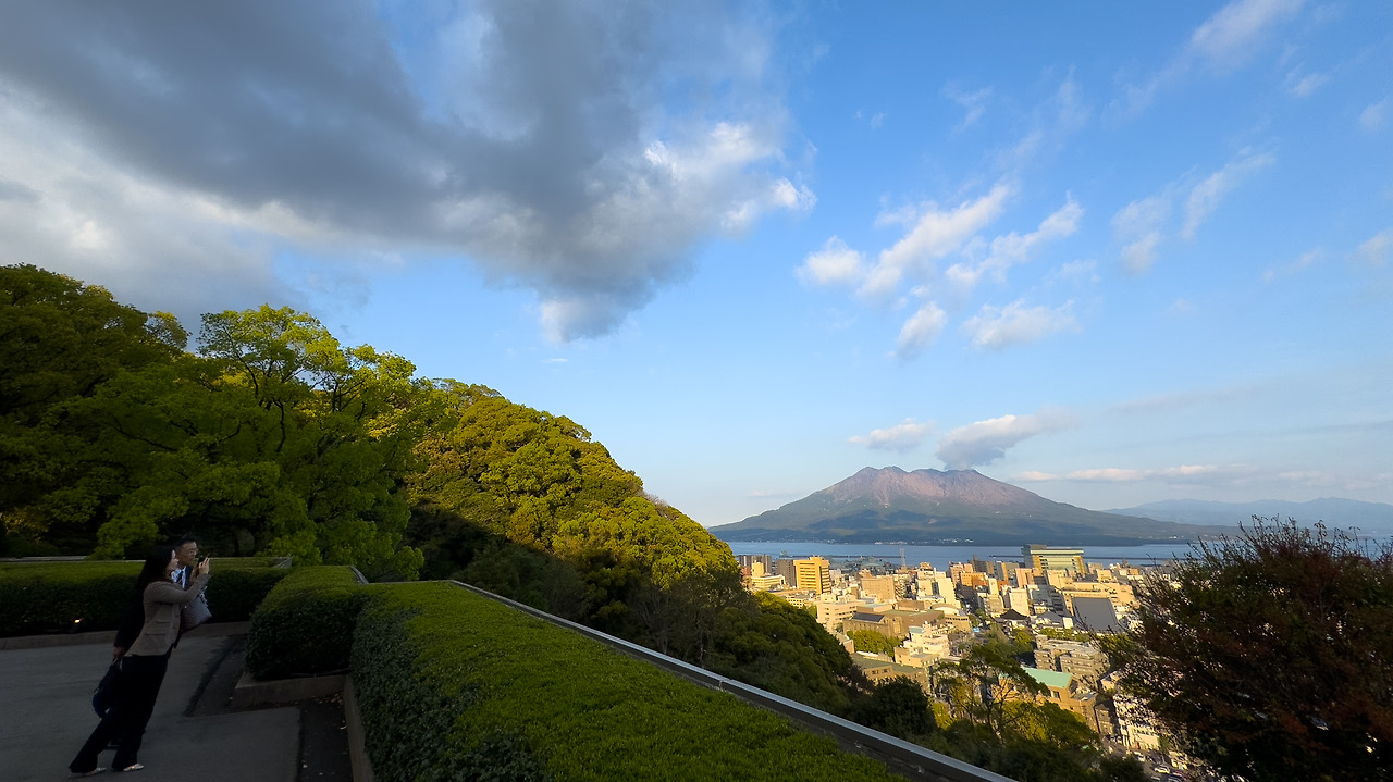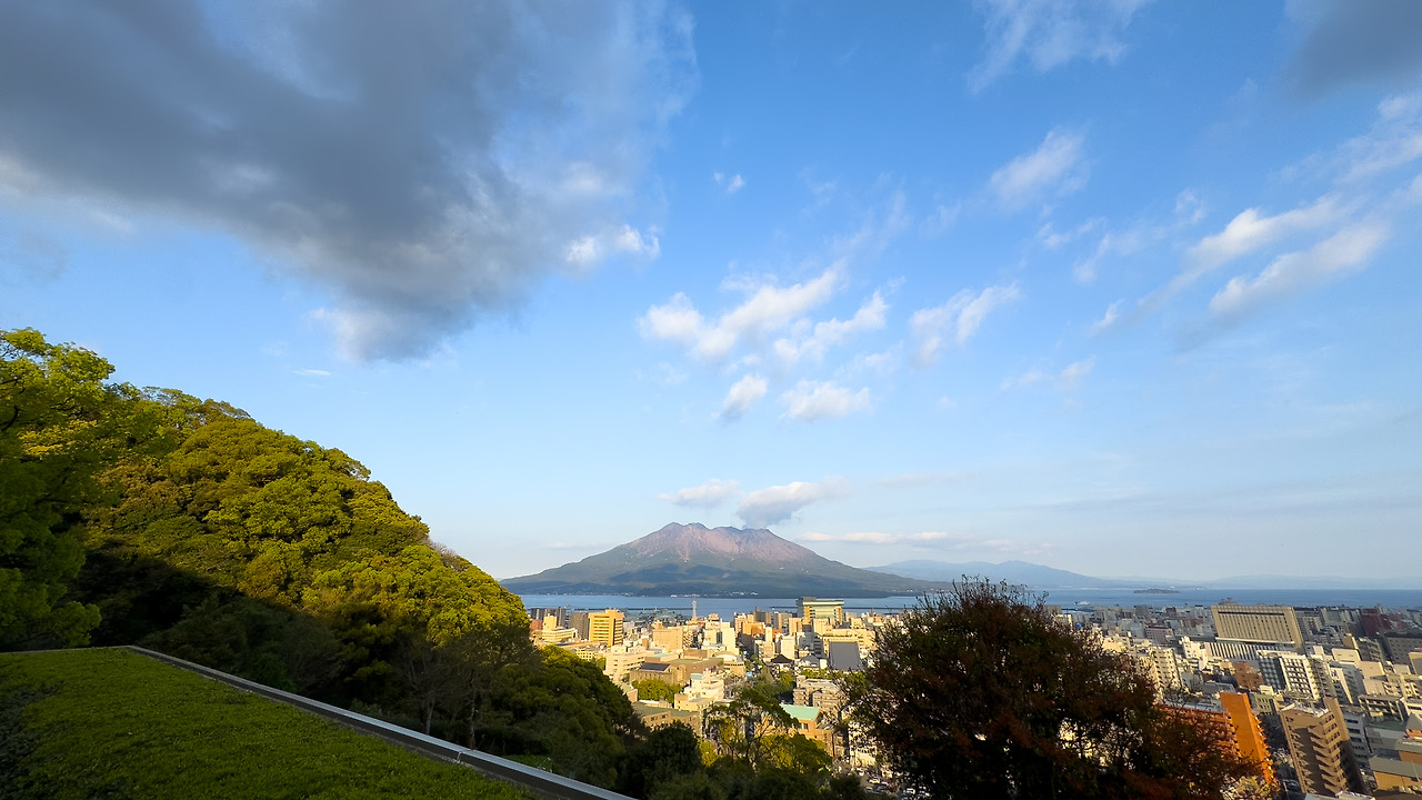 셔틀 버스를 타고 도착한 호텔. 체크인하기 전에 먼저 주위를 둘러보는데, 우와 진짜 예약 잘 했다. 경치가 너무 좋다. 라고 스스로를 자꾸 칭찬하고 싶어집니다. 가고시마 시내가 한 눈에 내려다 보이는 위치. 그리고 멀리 보이는 가고시마의 상징 사쿠라지마(桜島).