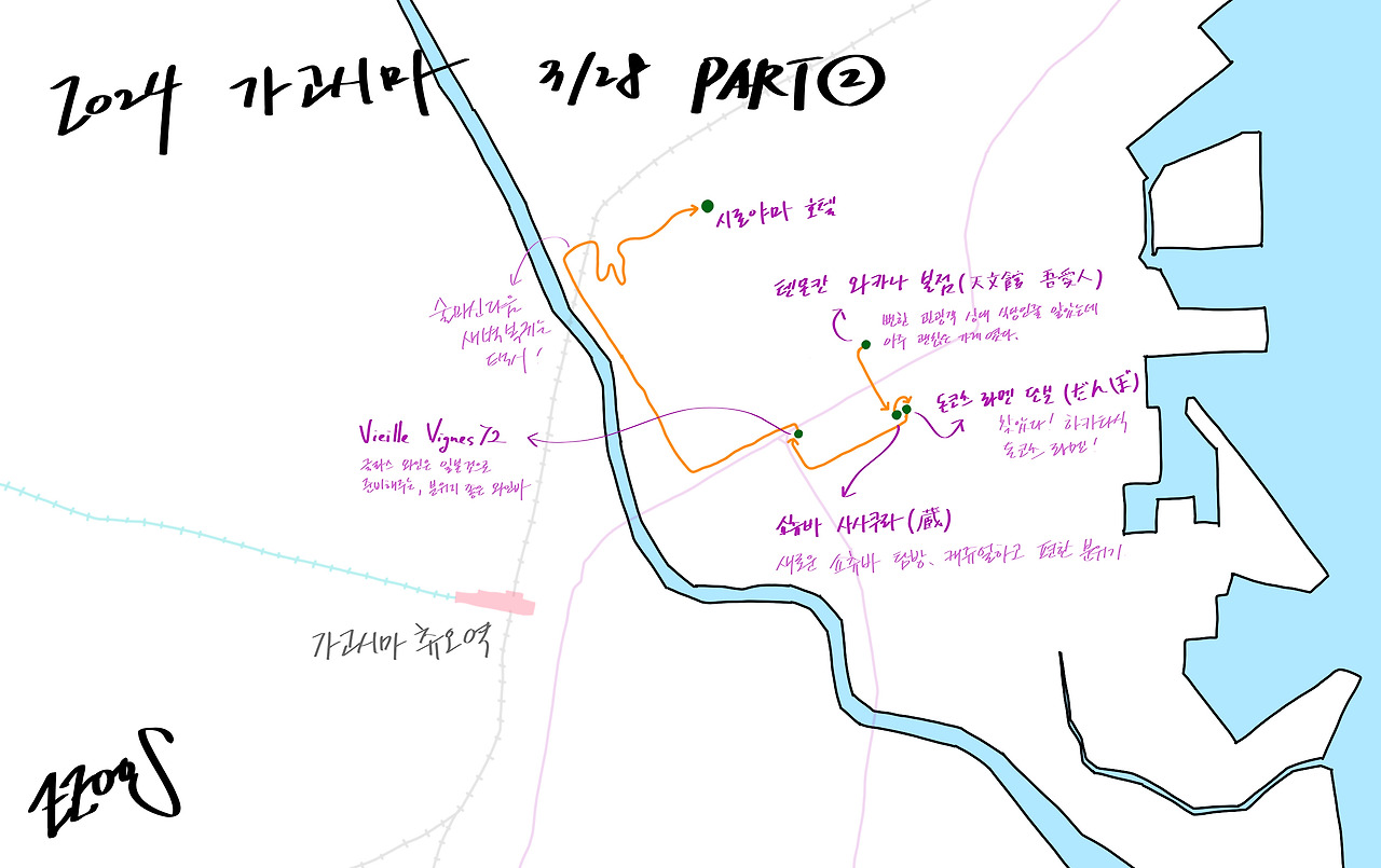 라멘으로 해장 겸 야식까지 했으니 이제 호텔로 올라가 자야 하는 시간입니다. 한 11시 쯤 됐으니까요. 하지만 뭔가 아쉽습니다. 와인을 한 잔 하고 싶은 생각도 들고요. 하아, 어쩌면 이건 라멘으로 해장을 해버린 후유증 같은 것인지도 모르겠습니다.