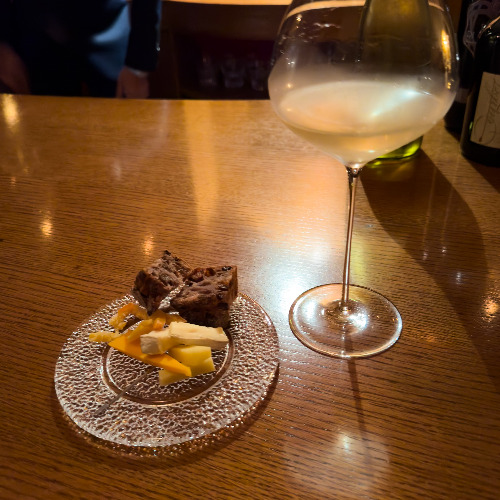 피노누아 한 잔, 까쇼 한 잔을 부탁 드렸더니 히로시마의 피노누아 한 잔과 이와테(홋카이도 바로 아래)의 카베르네 소비뇽과 카베르네 프랑 블렌딩을 한 잔 주셨습니다. Vinoble Vineyard Pinot Noir 2022와 시와(紫波) Cabernet Sauvignon & Cabernet Franc 2018.