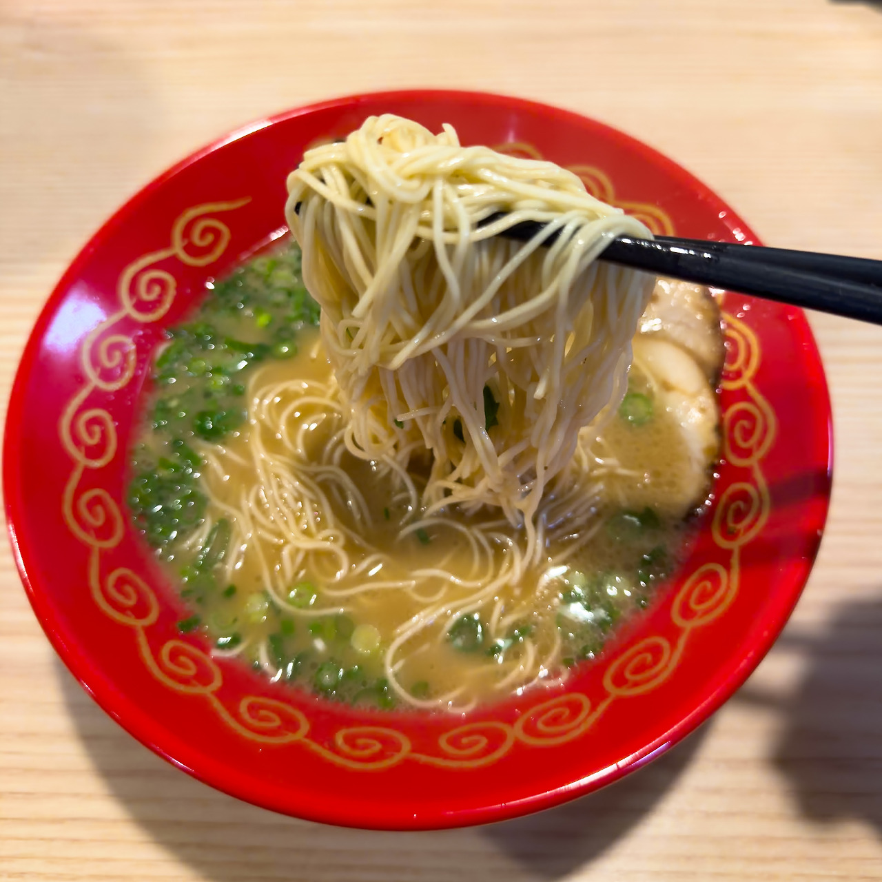 당연히 기본 돈코츠 라멘을 시켰습니다. 면의 익힘 정도는 카타(カタ)로 해달라고 했죠. 파스타 먹을 때의 알단테 처럼 심이 살아 있는 정도로 약간 덜 익히는 것을 말합니다. 더 기름지게 해달라고도 요청하고 싶었지만, 그러면 속이 부대낄까봐 국물은 기본으로.