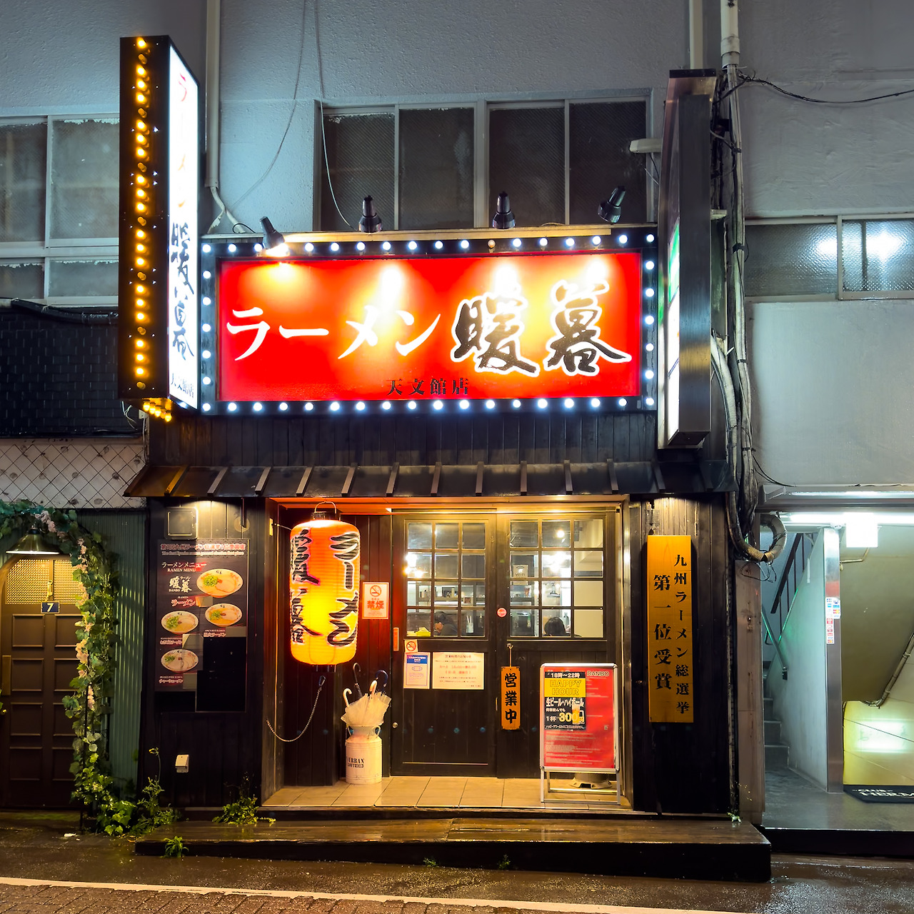 어느 정도 취기가 올라 오길래 쇼츄바를 나왔습니다. 그리고 해장 겸 야식을 먹어야죠. 이건 저의 음주 버릇이기도 합니다. 어제 갔던 라멘집이 100% 마음에 들지는 않았기 때문에 오늘은 다른 가게를 가 봅니다. 바로 근처에 있는 단보(暖暮). 후쿠오카에 본점이 있는 하카타식 라멘입니다. 전국적인 규모의 체인점이고 해외에도 분점이 있을 정도로 큰 규모의 라멘 체인점.