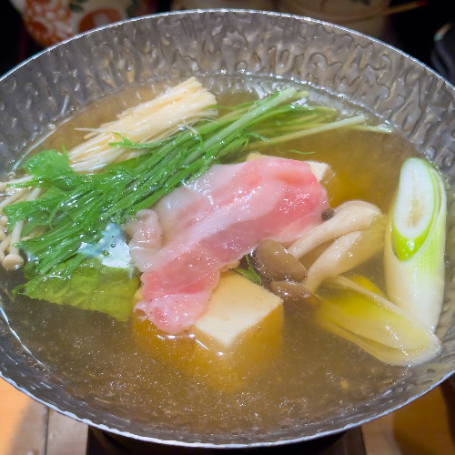 일단 가고시마 흑돼지 샤브샤브를 주문했습니다. 2인 이상이면 코스 같은 것을 주문할 수 있었는데, 다양한 부위의 고기가 나오더라고요. 혼자라서 시킬 수 없기도 했지만 너무 거한 느낌이었는데, 1인용 메뉴가 있었습니다. 구성이 좀 다르지만 샤브샤브는 맛만 보고 다른 메뉴도 주문할 수 있다는 점이 좋았습니다.