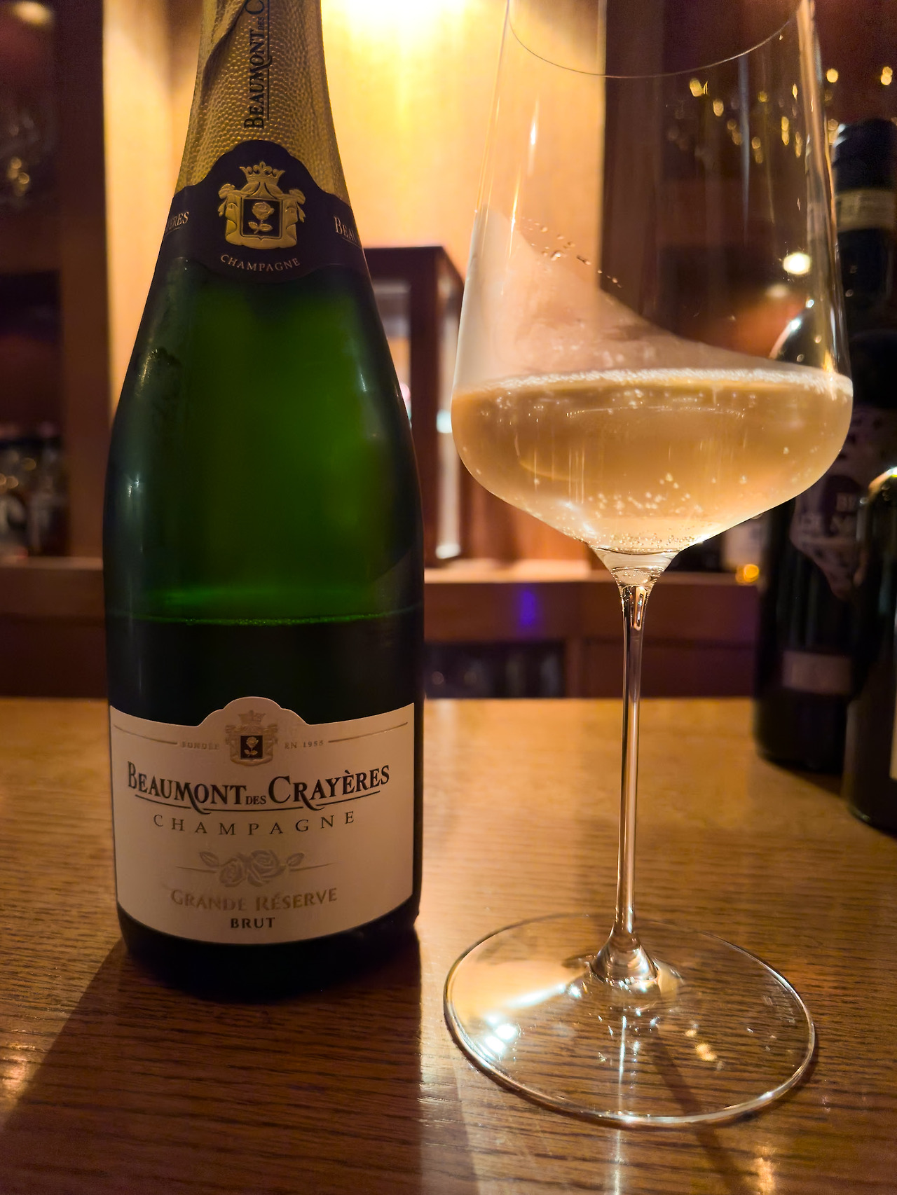 이제 모든 술을 마무리하기 위해서 스파클링으로 입가심을 해야겠어요. 그래서 글라스 와인으로 스파클링을 부탁 드렸더니 샴페인이 하나 있다고 하시더군요. 어쩔 수 없이 '샴페인'은 상빠뉴 지역의 것이어야 하니까 이건 프랑스의 와인이었습니다.