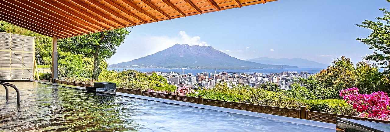 '땅만 파면 온천이 나온다'라고 할 만큼 온천수가 솟아나는 지역이라서 숙소에 온천이 딸려 있는 곳이 많다고 합니다. 그러고 보면 제가 묵었던 숙소 두 곳 모두 호텔에 무료 온천이 있었어요. 저렴한 3성급 호텔인 호텔 후리아게소(ホテル吹上荘)에는 대중 욕탕 같은 느낌의 작은 온천탕이 무료였고, 이번에 묵었던 4성급 호텔인 시로야마 호텔 가고시마(城山ホテル 鹿児島)에는 엄청난 뷰를 자랑하는 노천탕이 포함된 온천이 무료였습니다. 가고시마 여행을 계획 중이라면, 숙소에 온천이 포함되는지 잘 알아볼 필요가 있어요.