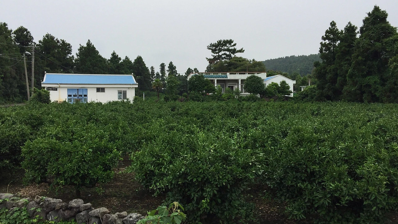 자그마치 15일이나 지낼 곳이니 나름 고르고 골라서 선택한 곳이다. 숙소 근처는 위의 사진처럼 모두 감귤밭. 아직은 초여름이라 아주 작은 열매들만 맺혀있는 키 작은 나무들.