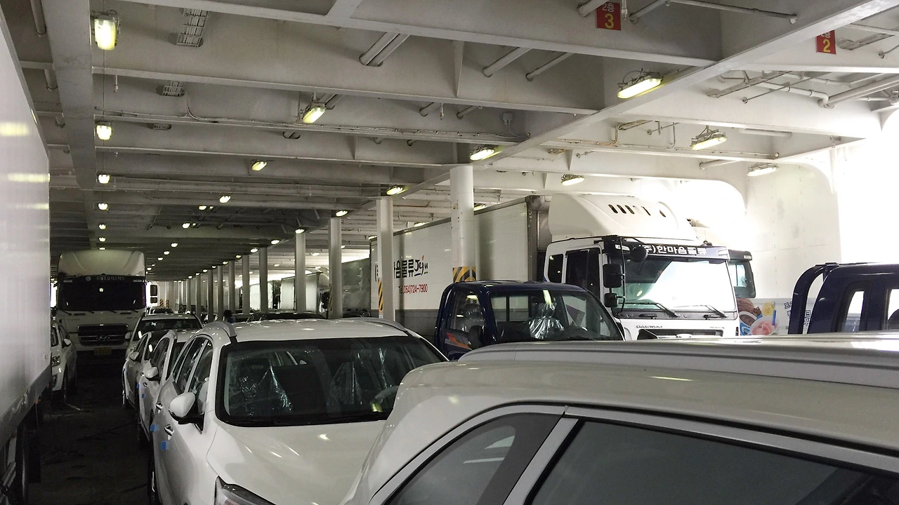 일찍 가면 깊숙한데 차를 세운다더니 너무 일찍 도착해서 그런가? 배에 올라서자마자 바로 오른편으로 인도해주신다. 주차에 익숙하지 않아서 걱정을 좀 했는데, 너무나 익숙하게 유도를 해주시는 분들 덕분에 아주 쉽게 주차까지 클리어.