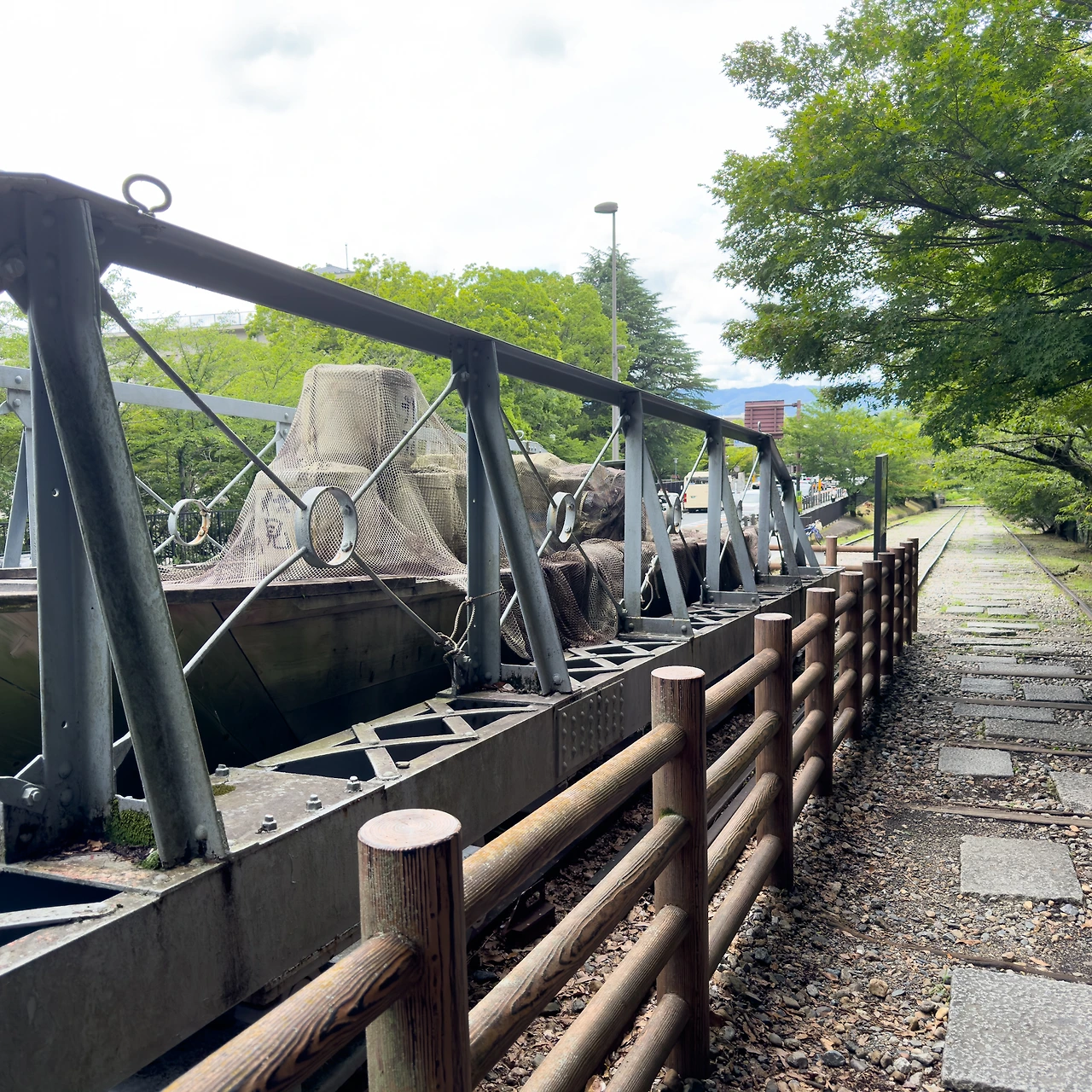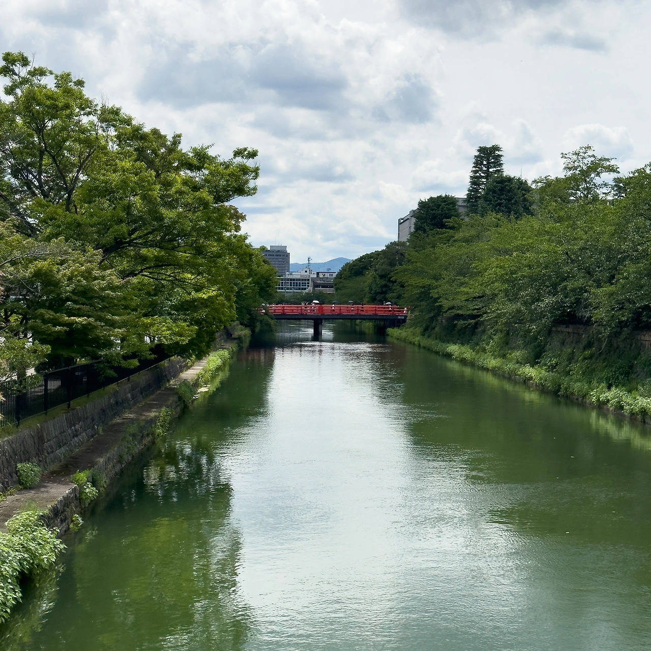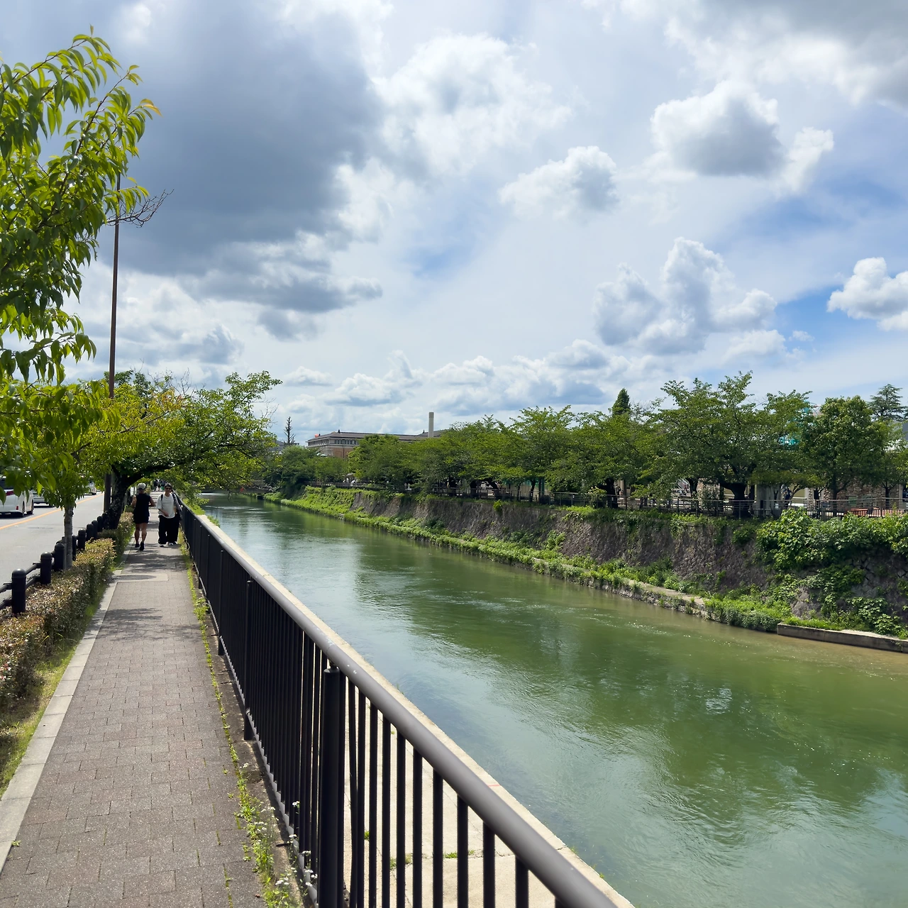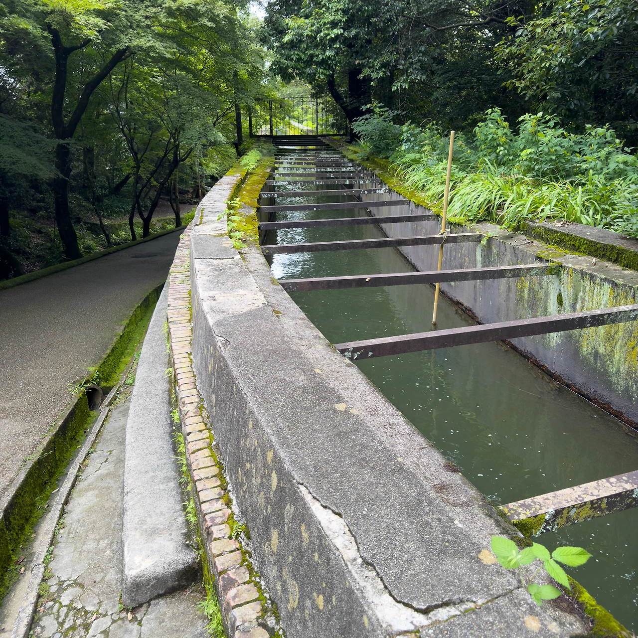 수로의 뒤편으로 가보니 수로를 위에서 볼 수도 있더군요. 정말로 물이 흘러갑니다. 좀 탁하고 민물 비린내도 좀 납니다. 정말 이게 헤이안 신궁 앞까지 흘러서 카모가와로 합쳐지는 건가.