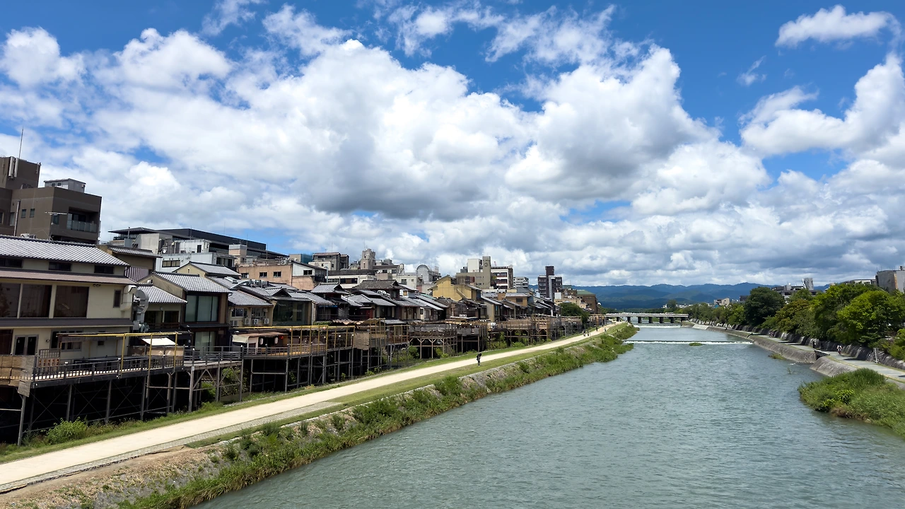 어제는 하루종일 비가 내리더니 오늘은 아침부터 쨍~합니다. 날씨 어플을 보니 내일, 모레는 비가 좀 많이 올 것 같네요. 지금 교토는, 아니 일본은 장마철이니까 이게 당연한 거죠. 여행을 시작할 때에도 그걸 각오하고 온 거고요. 그래서 철저하게 시간을 낭비하겠다는 결심을 하고 출발한 여행이란 말이죠. 그런데 말입니다, 별 거 하지 않고 시간을 낭비하겠다는 결심을 하긴 했었지만, 막상 이렇게 날씨가 좋은 하루가 생기니까 그냥 버리긴 아깝더라고요. 분명히 덥긴 하겠지만 그래도 밖으로 나가봅니다.