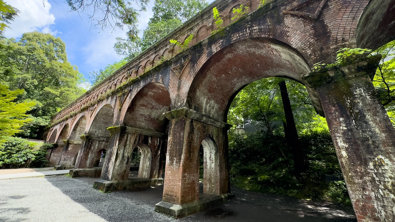 오늘의 목적지. 난젠지의 수로. 영화나 드라마에도 자주 나오는 장소이기도 하고, 여기저기에서 사진으로 많이 보던 곳입니다. 교토에 여러 번 왔었지만 난젠지는 이번이 처음이에요. 비와호의 물을 교토로 끌어들이는 상수도 역할을 하는 데, 메이지 시대(1868~1912)에 지어졌다고 하네요. 당연히(?) 난젠지는 그보다 훨씬 오래전에 창건한 사찰이고, 기존의 사찰 위를 지나가는 수로를 만든 것입니다.