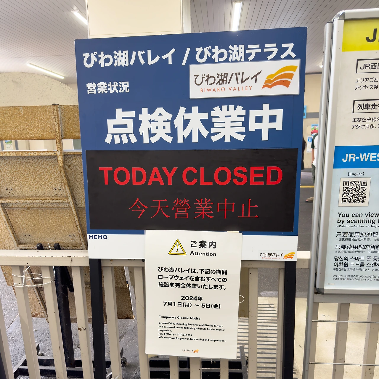 어? 비와코 밸리에 대한 안내이긴 한데... 버스 정류장 위치나 시간표에 대한 안내가 아니라... 7월 1일부터 5일까지... 휴무라는 안내입니다. 어? 오늘은 3일이니까... 오늘 쉰다는 얘기네????