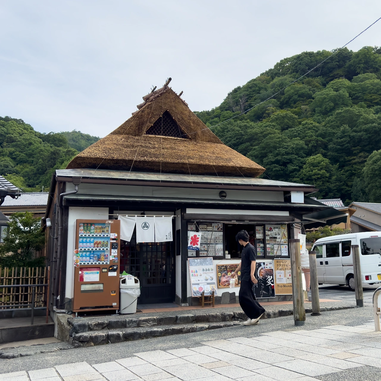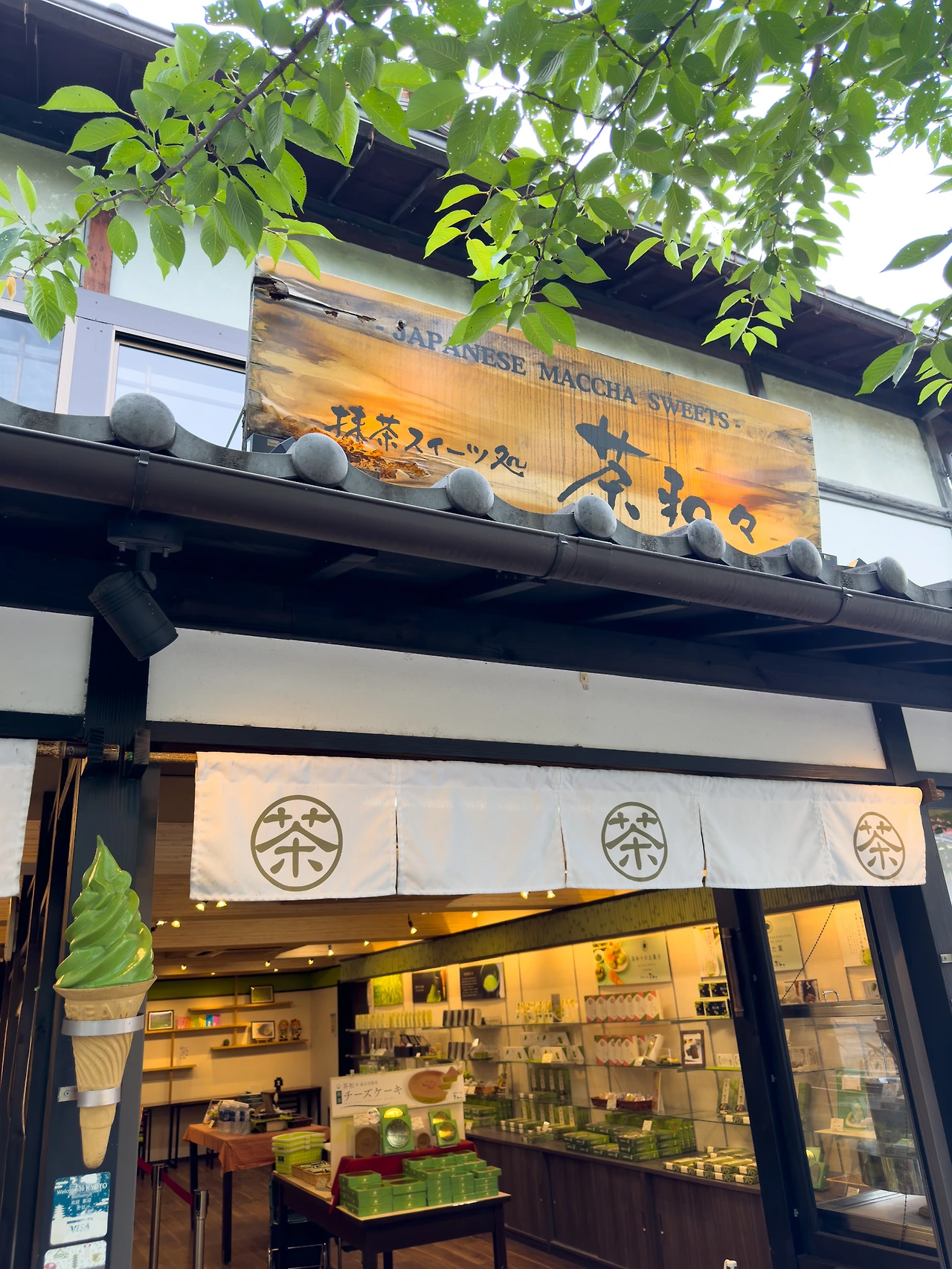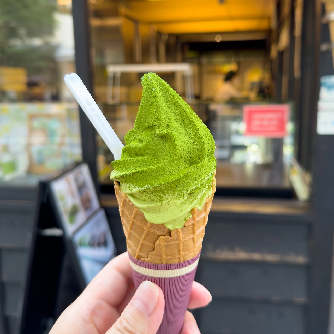 자, 이제 대나무 숲에서 나왔습니다. 아라시야마의 메인 거리랄까요? 이번 여행 동안 우지(宇治)에 갈 것 같지는 않으니 우지 말차 아이스크림을... 아니 그냥 너무 더워서, 살기 위해 아이스크림을 하나 먹습니다. 기왕에 먹는 거 우지 말차로 골랐어요. 비싸지만 가장 찐한 걸로 골랐는데, 아뿔싸 너무 찐하니까 시원하긴 한데 입이 텁텁해집니다.