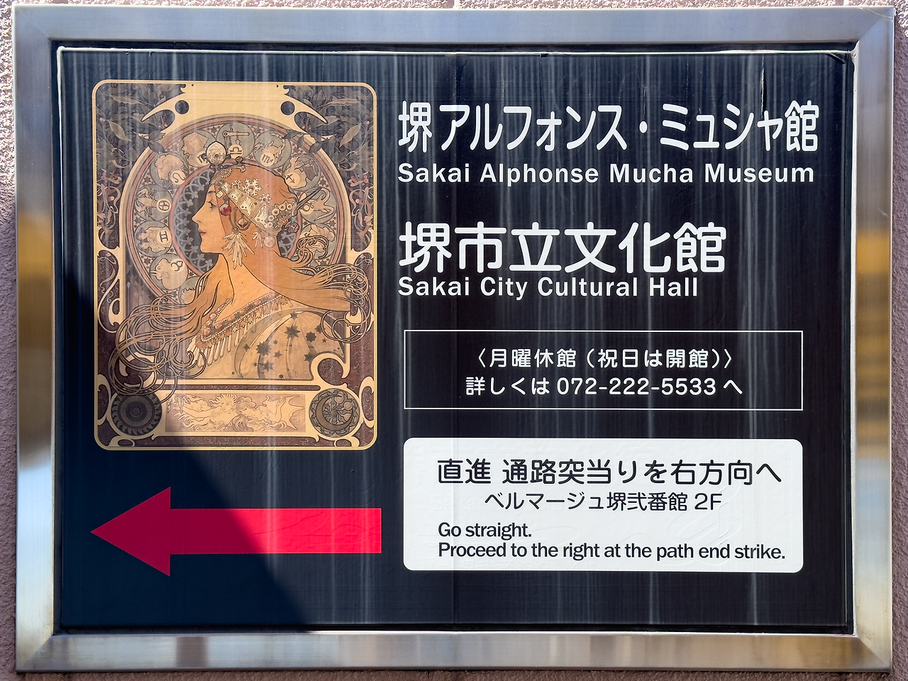 사카이시 역에서 출구로 나오자마자 이런 표지판을 볼 수 있었어요. 이 역에 내리는 관광객(?)은 모두 알폰스 무하 미술관에 가는 사람들인가 봅니다.